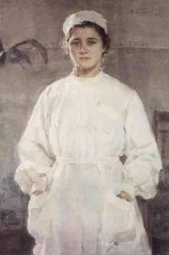 Михаил Михайлович Божий (1911-1990) известный как мастер портретной живописи, средствами которого старается раскрыть внутренний мир человека, подчеркнуть богатство и значимость этого мира. Одно из своих полотен Божий посвятил человеку скромному, но очень нужной профессии. Картина называется «Медсестра». Это одна из последних и чуть ли не самая известная картина художника.