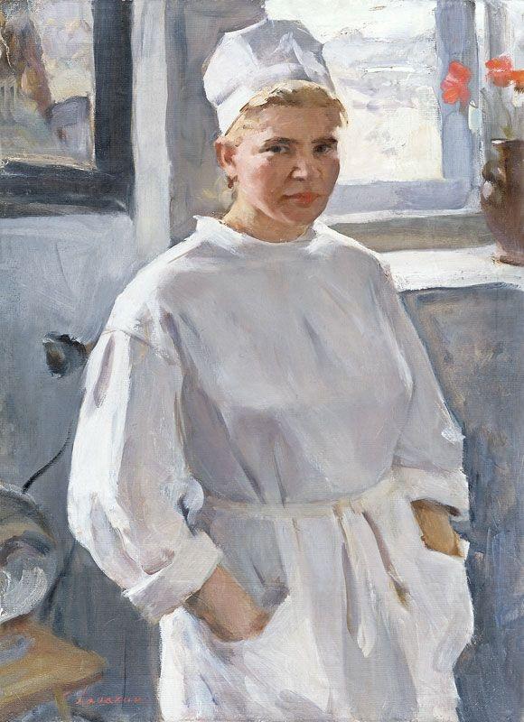 В большой портретной галерее современников, созданной О. Ломакиным за более чем полвека творчества, заметное место заняли работы, посвящённые врачам. Но первым в этом ряду и, пожалуй, наиболее сильным по живописи и цельности образа стал портрет «Медсестра», написанный О. Ломакиным в 1970 году.