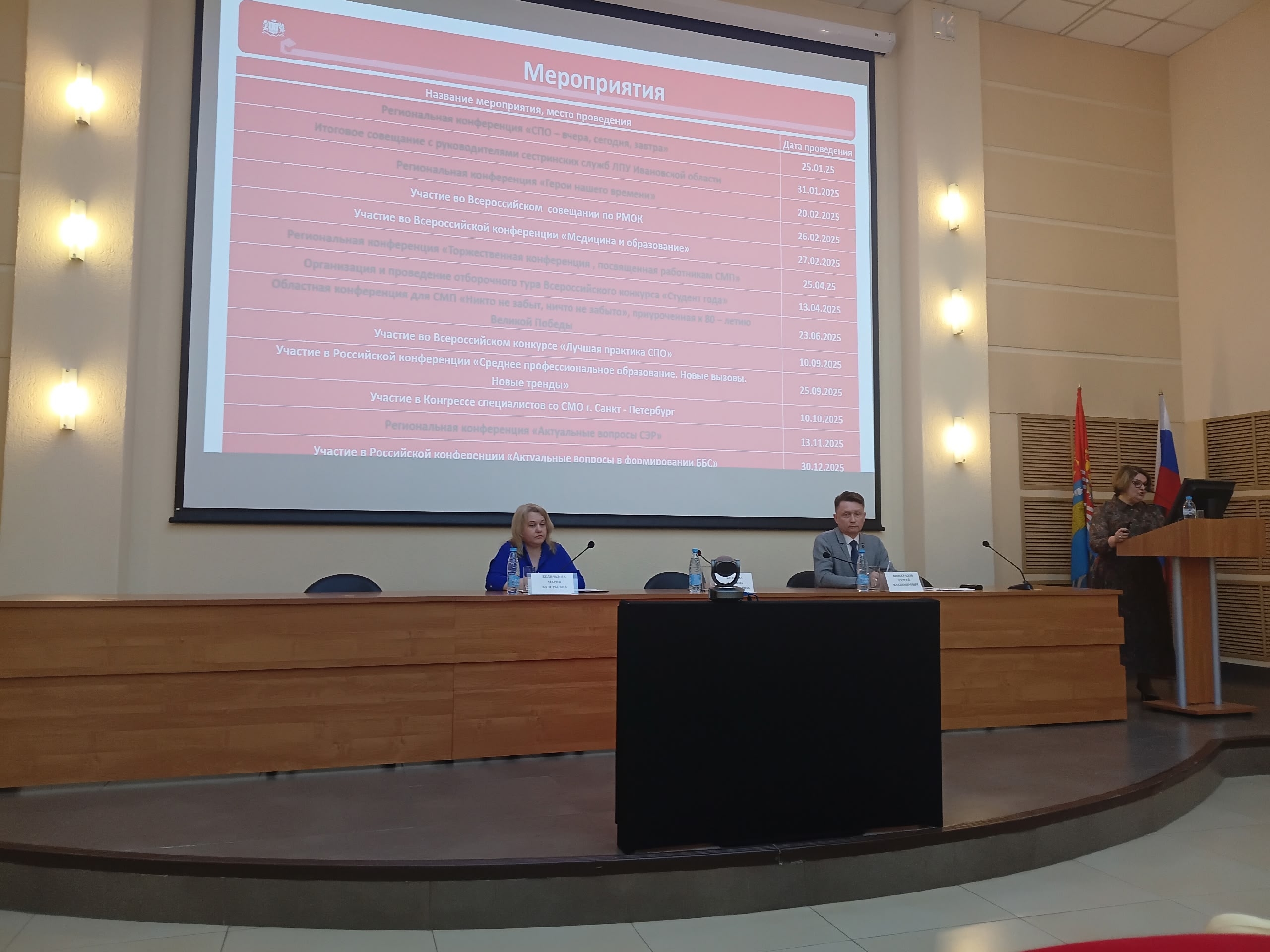 Прозвучал доклад Главного внештатного специалста по управлению сестринской деятельнлстью Департамента здравоохранения Ивановской области, директор Ивановский-Медицинский-Колледж Иваново Татьяны Валентиновны Кудриной. Озвучены проблемы и пути их решения в вопросах подготовки медицинских кадров для практического здравоохранения Ивановской области.